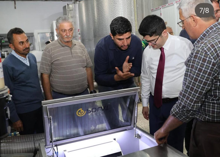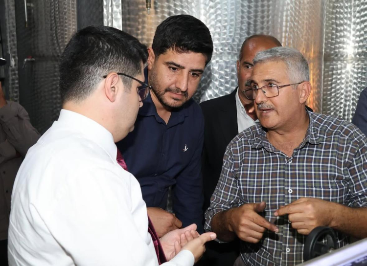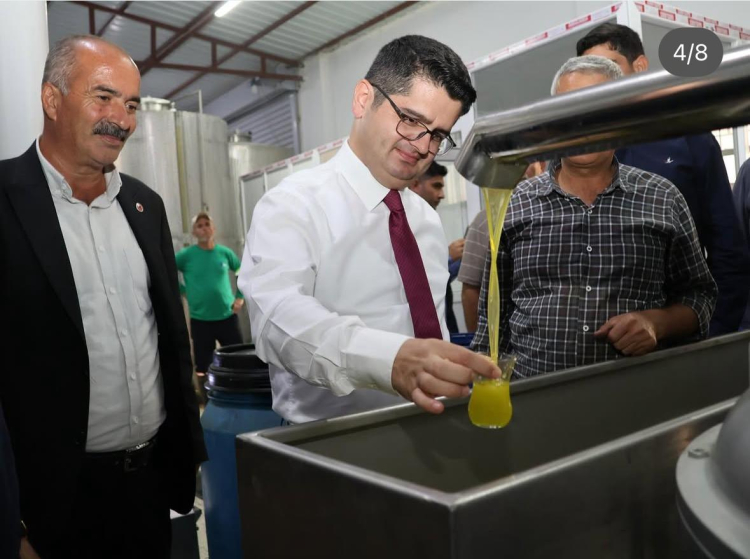 Kaymakam Eroğlu, işletme yetkililerinden zeytinyağı üretimi, nar sıkımı, ürün çeşitliliği ve bölgenin rekolte durumu hakkında detaylı bilgiler aldı.